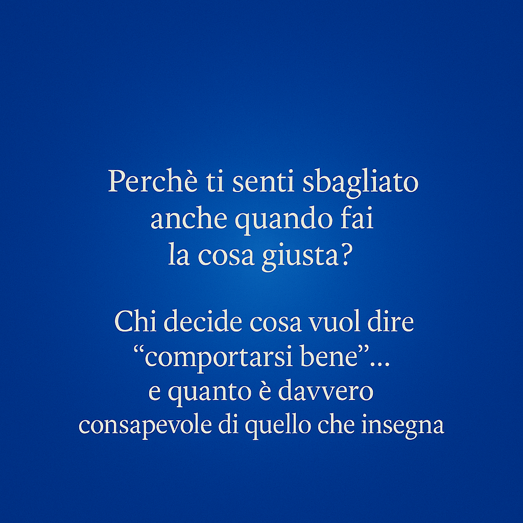 Perché ti senti sbagliato anche quando fai la cosa giusta? Chi decide cosa vuol dire “comportarsi bene”… e quanto è davvero consapevole di quello che insegna?