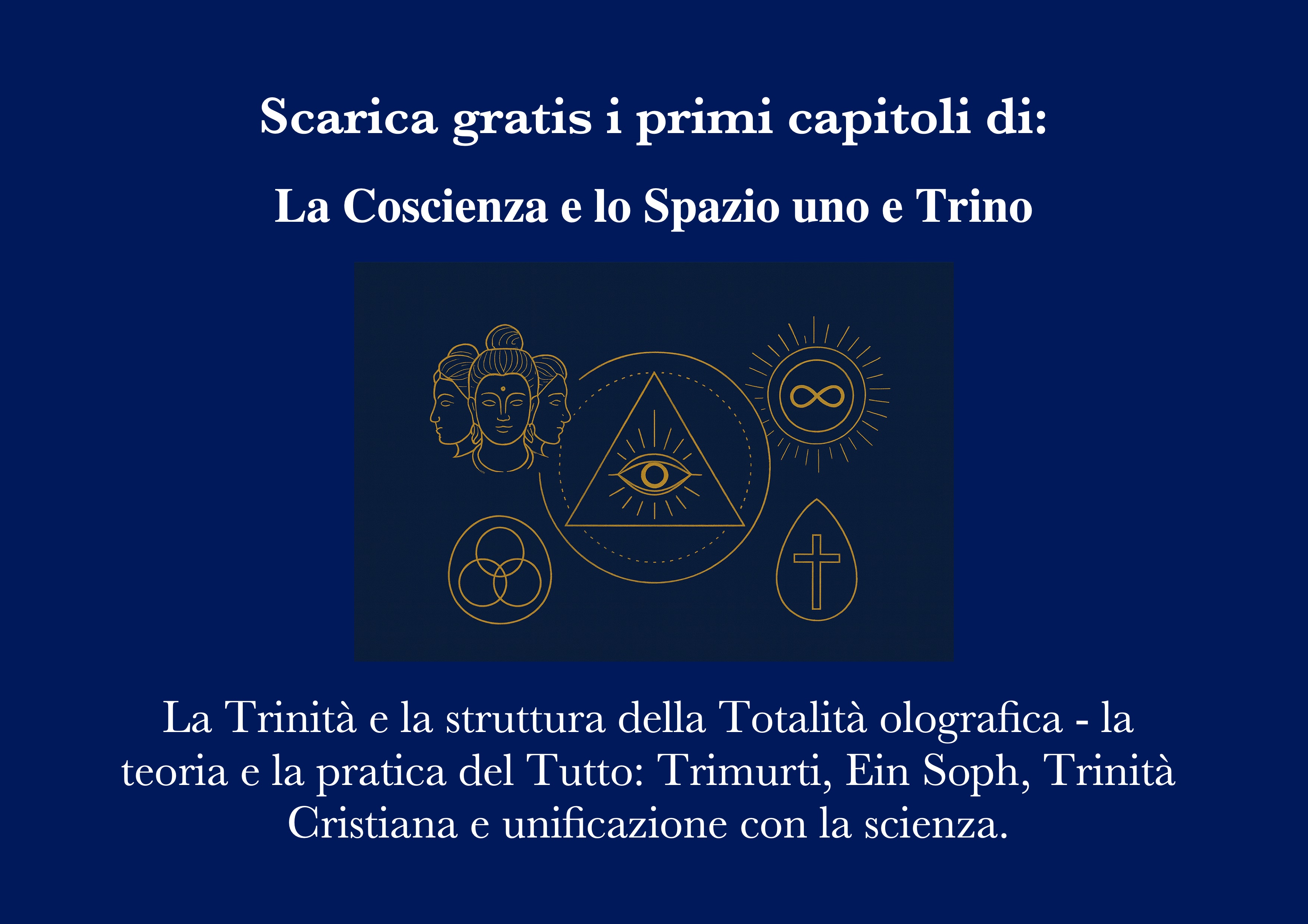Scarica gratuitamente i primi capitoli del libro La Coscienza e lo Spazio uno e Trino: La Trinità e la struttura della Totalità olografica – la teoria e la pratica del Tutto: Trimurti, Ein Soph, Trinità Cristiana e unificazione con la scienza.